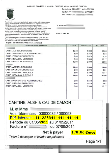 Numéro de facture internet - - -
